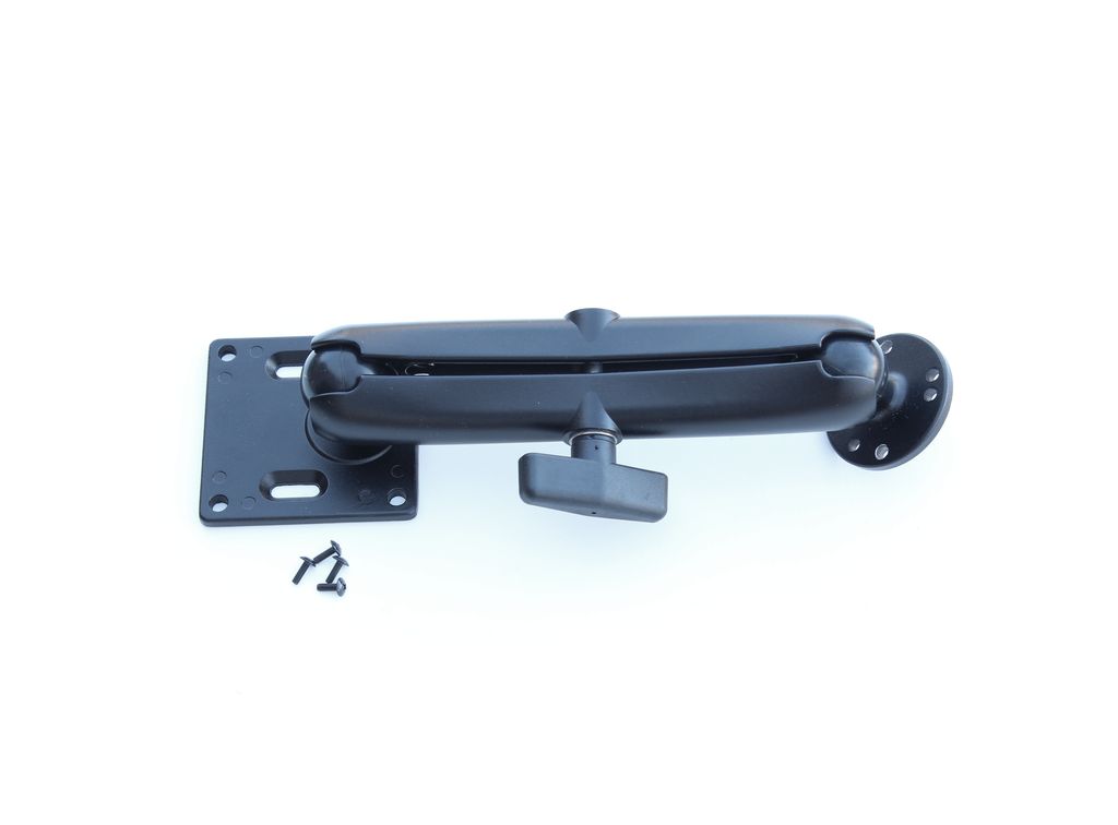 Secure your SmartiPi Touch with this premium aluminum VESA arm. Designed to connect to the 75mm M4 threads on the back of the housing using the four included M4 screws. This 26cm arm is available in two mounting configurations: a flat surface mount or a pole mount (30–50mm). The arm articulates on dual 1.5-inch ball joints, controlled by a central locking arm. This allows you to fluidly adjust the viewing angle and then instantly lock both joints with a single turn for a rock-solid setup.